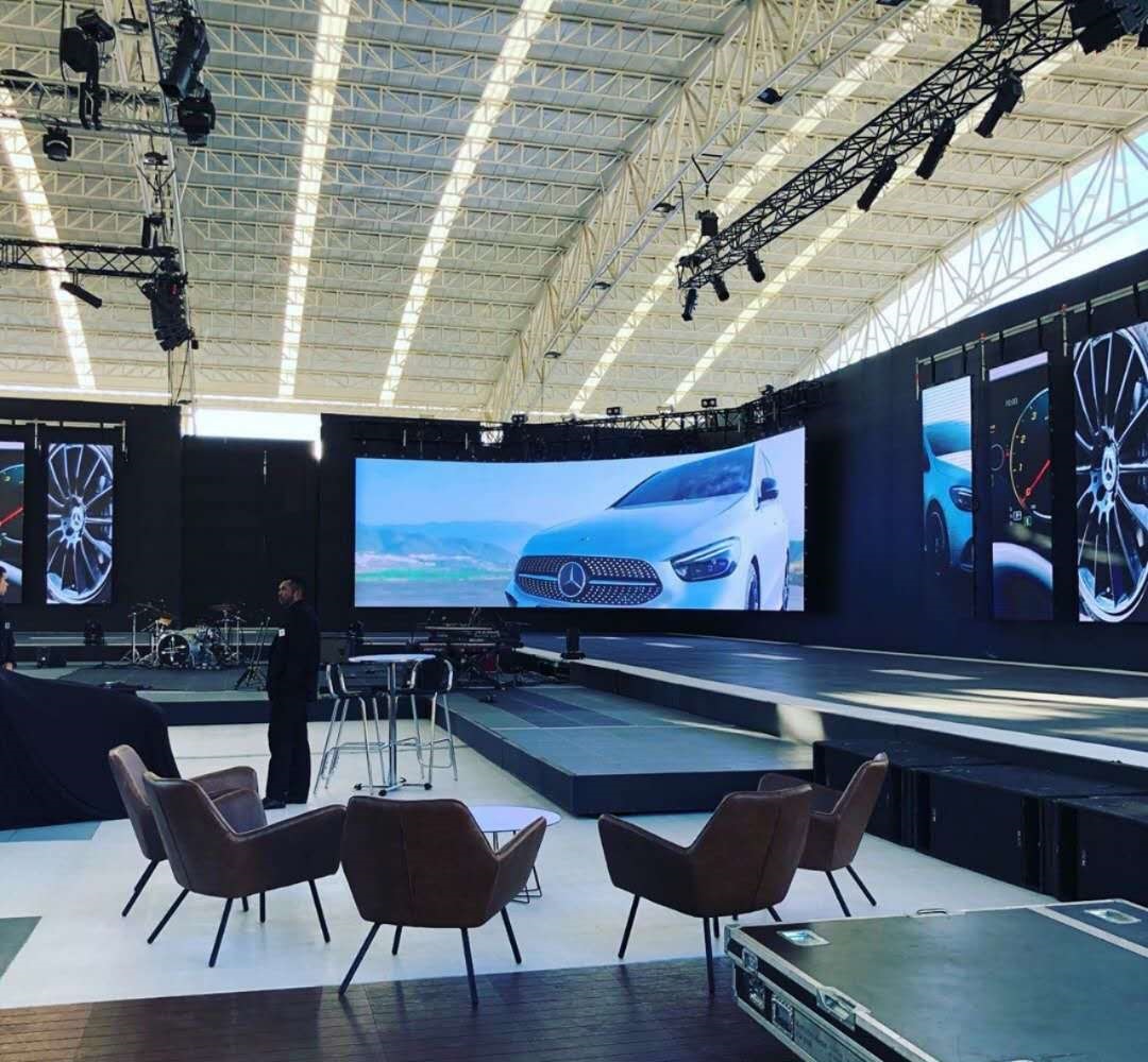 Recently, Our IRP series P3.9 outdoor Curve LED Wall is succefully installed in Colombia for Mercedes Benz New Model Launch. Thanks to our clients for selecting our products.